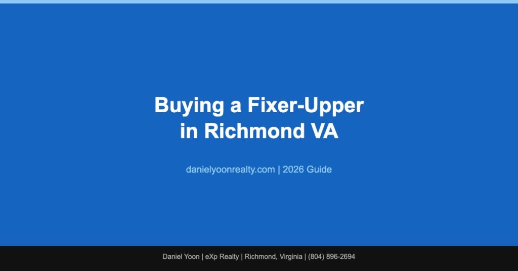 Considering a fixer-upper? Call Daniel Yoon at (804) 896-2694. I help buyers evaluate renovation potential and connect them with trusted Richmond contractors.